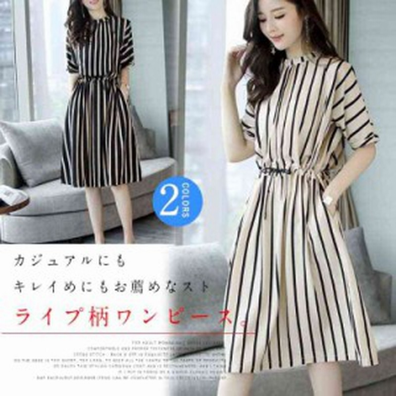 夏気分になれちゃう ストライプワンピース ワンピース ストライプ柄 太めストライプ 半袖ワンピース 膝丈 春夏 ゆったり カジュ 通販 Lineポイント最大1 0 Get Lineショッピング